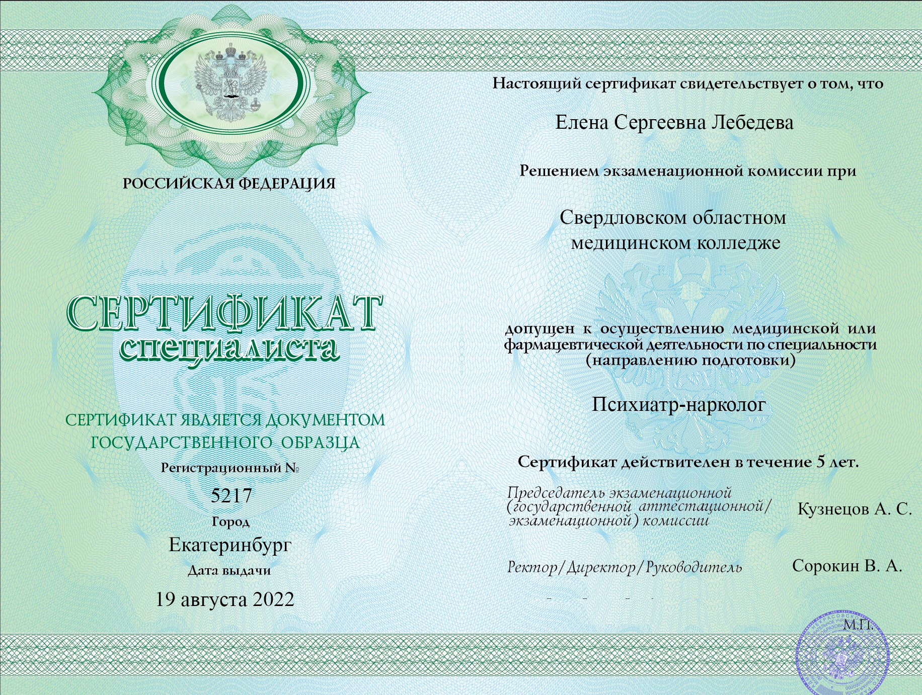 Елена Сергеевна Лебедева врач нарколог клиники доктора Стукаловой в Карымском